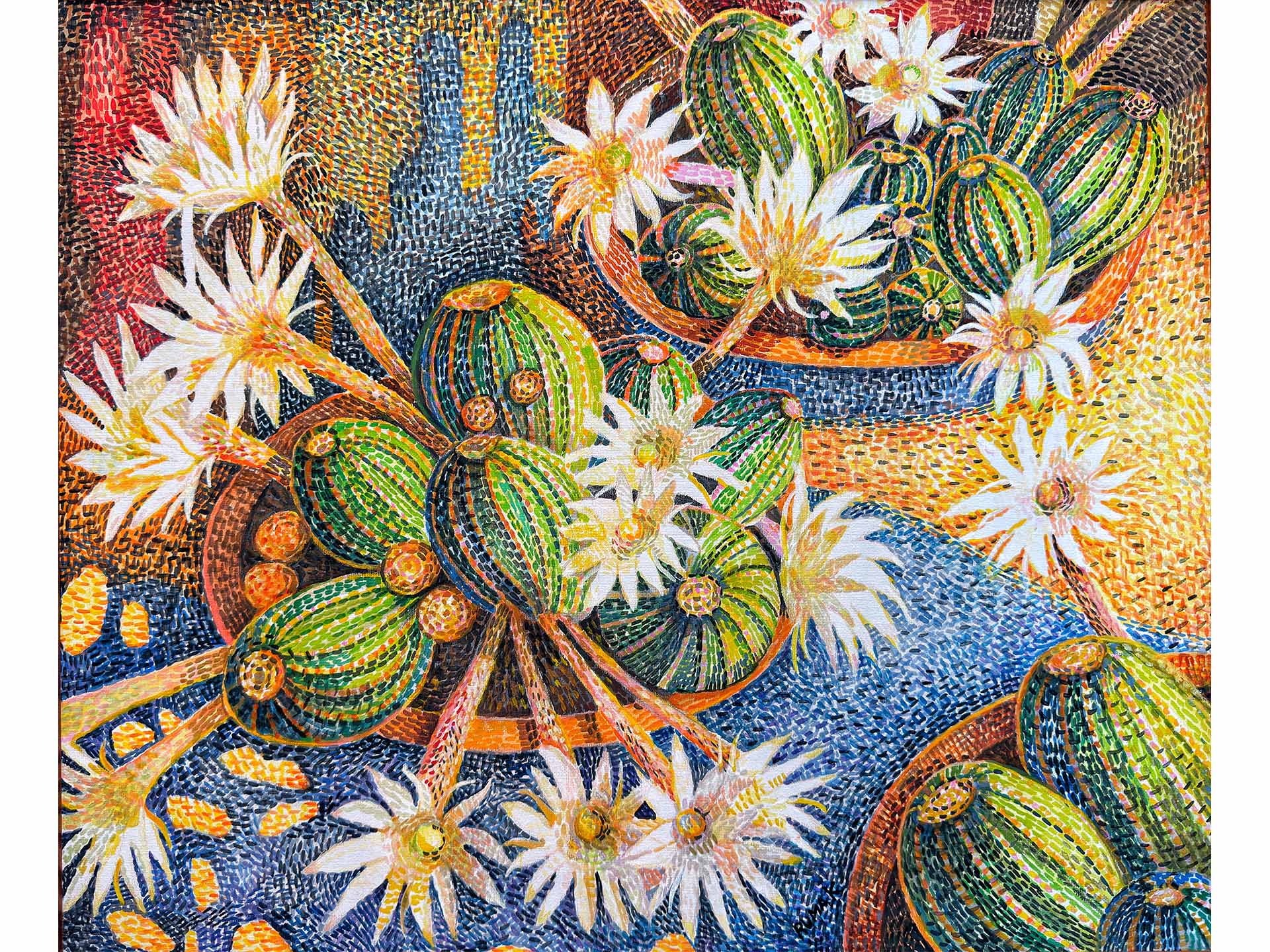 Anna Rumak, Cactus in fiore, olio su tela, 50 x 60