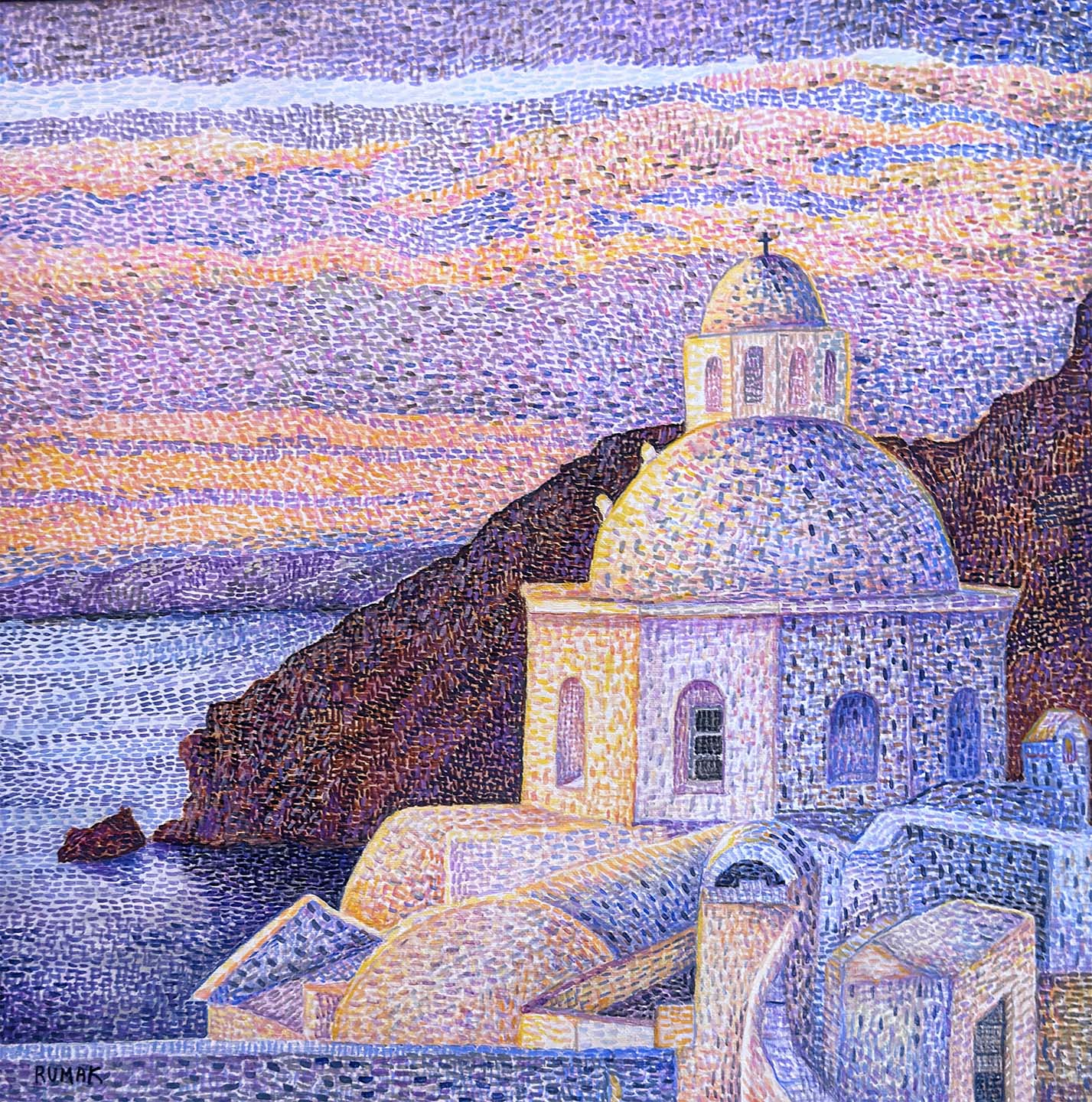 Anna Rumak, Particolare chiesa sul Peloponneso, olio su tela, 40 x 40